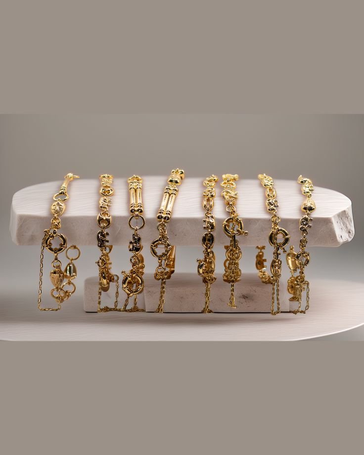 Bracelet en acier inoxydable doré, résistant à l’eau et conçu pour un usage quotidien. Léger et confortable, il s’adapte à tous les styles.